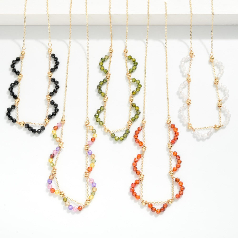 Chain Link Necklace Featuring Beaded Cubic Zirconia Arch Detail