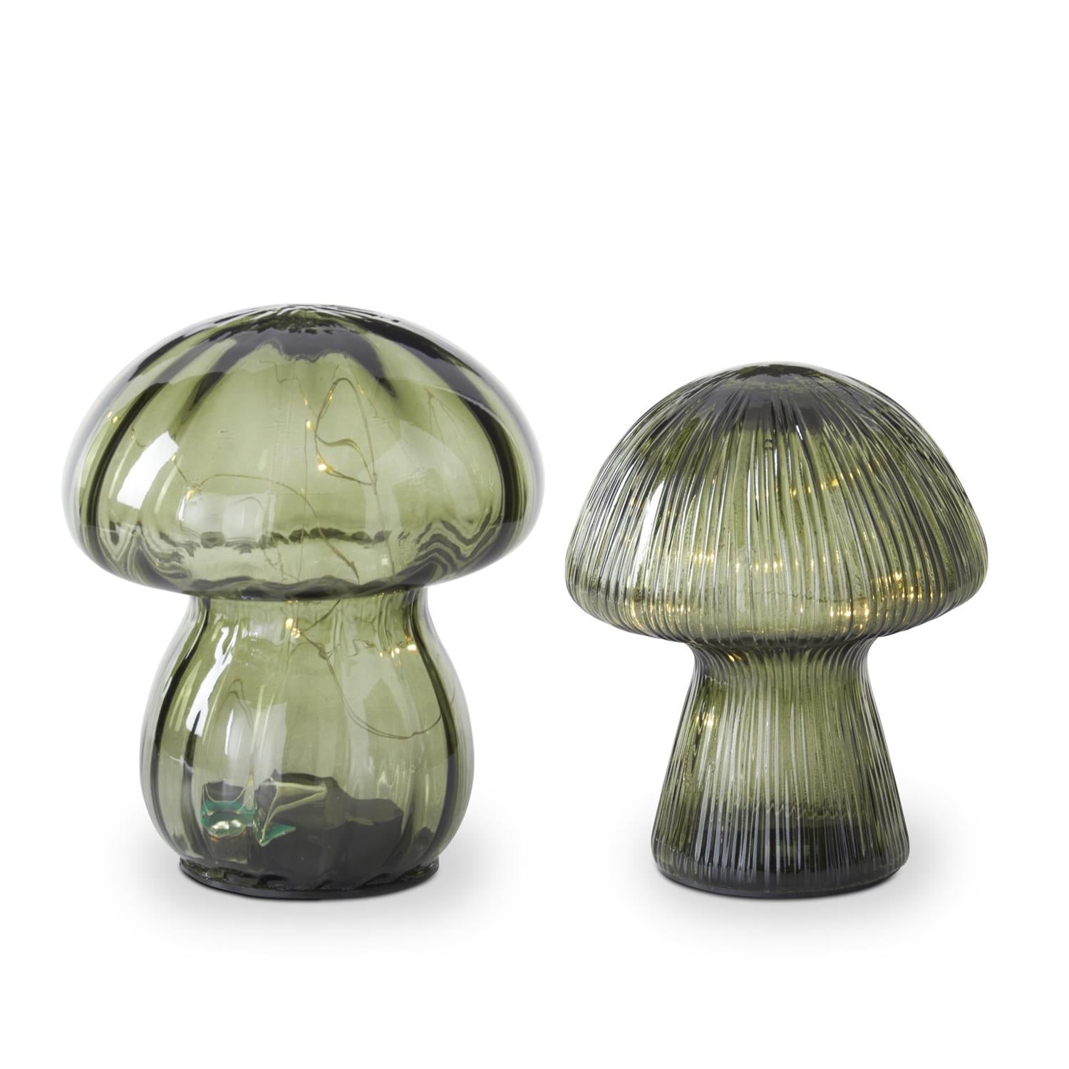 Enchanting green glass mushrooms that glow with warm LED fairy lights, perfect for adding whimsical ambiance to any space. Each mushroom features a convenient built-in timer, allowing you to set your desired lighting schedule without manual adjustments. Available in two sizes to suit different display areas. The matching brown option is sold separately, so you can mix and match to create your ideal woodland-inspired collection.