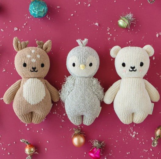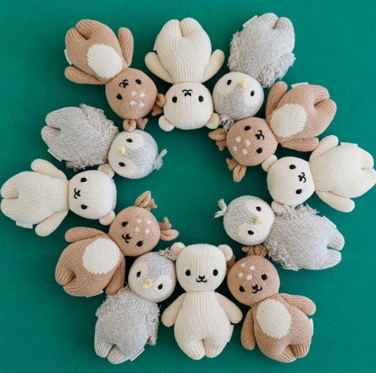 Absolutely adorable and oh so collectible! Our hand-knit baby animals are the perfect way to start or grow your cuddle+kind collection. Every heirloom-quality baby fawn is lovingly handcrafted from natural Peruvian cotton and alpaca yarn, with carefully considered details. At just a little bigger than your hand, they’re the softest, most lovable companions we could imagine. You and your little one will love collecting them all!