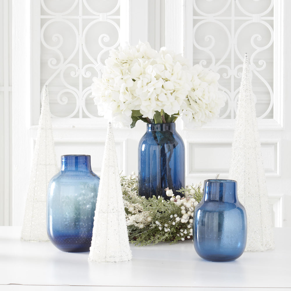 Crafted with elegant persian blue glass and adorned with delicate mini dots, our Persian Blue Glass Vases will add a touch of sophistication to any space. Available in 3 sizes, these vases are the perfect addition to your home decor collection. Elevate your interior design with these unique handcrafted vases.